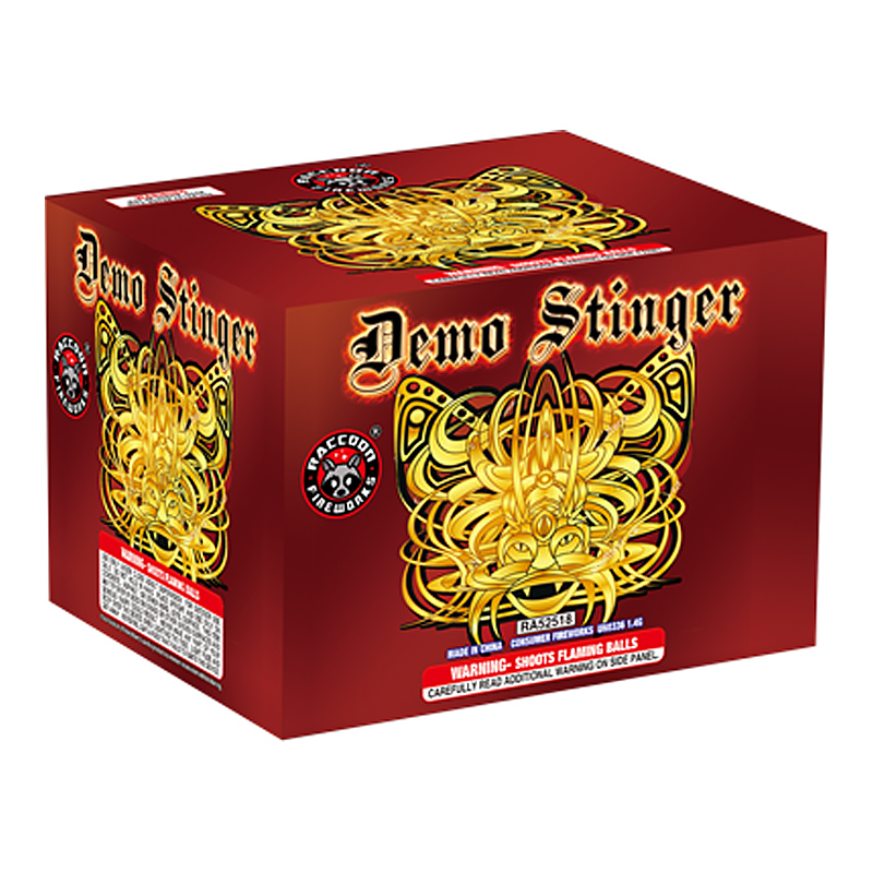 Demon Stinger: Brilliant, loud, long-hanging NISHIKI willow with multi-color strobes. RA52518 Demon Stinger Raccoon Fireworks 2021 New Product 25 shots.